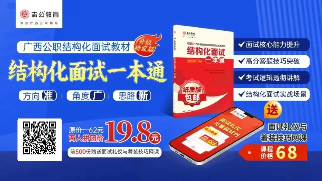 廣西區(qū)考面試準(zhǔn)備需緊扣本土特色,強化邏輯表達和實務(wù)能力,同時注重細(xì)節(jié)(如資格復(fù)審材料、禮儀)。建議從現(xiàn)在起每天練習(xí)2-3套題,持續(xù)積累廣西熱點案例,爭取面試高分!資料已經(jīng)為大家準(zhǔn)備好了,快去看看吧!