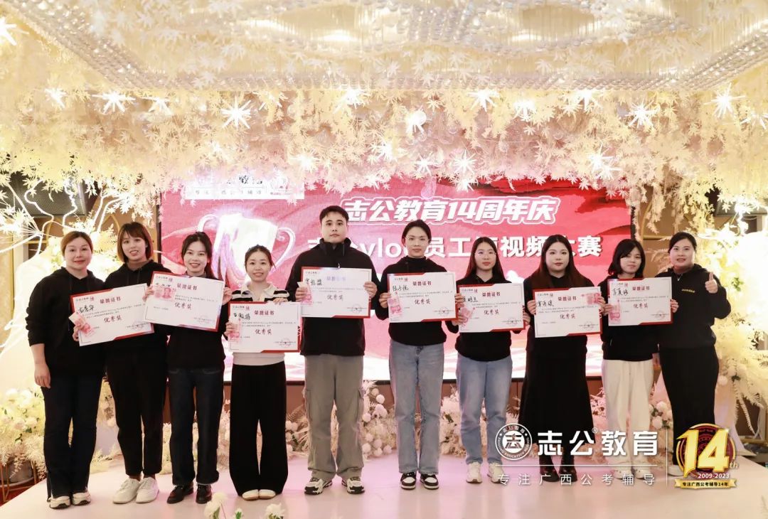 16日晚上,全體員工齊聚一堂,開始了頒獎(jiǎng)儀式,感謝各位志公人為志公教育的付出。頒獎(jiǎng)的項(xiàng)目有志公教育14周年慶舉辦的主題演講比賽和短視頻大賽。激動(dòng)的心,顫抖的手,努力有了回報(bào),獲獎(jiǎng)選手拿著獎(jiǎng)金,喜悅之情溢于言表。大家也都用掌聲來表達(dá)對(duì)他們的祝福。