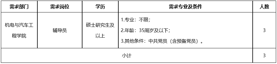 3.其他條件:具有參加中華人民共和國(guó)職業(yè)技能大賽參賽經(jīng)驗(yàn)者、職業(yè)技能等級(jí)證書優(yōu)先。具有正高級(jí)職稱的,年齡放寬至50周歲及以下,學(xué)歷放寬至本科,具有副高職稱的,年齡放寬至45周歲及以下。