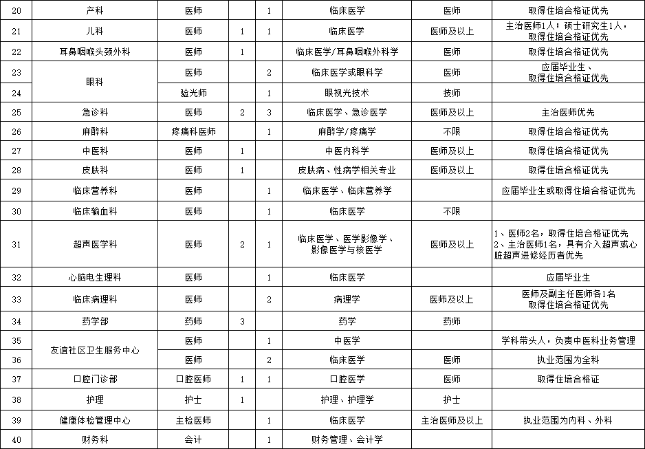 (二)臨床、醫(yī)技、護(hù)理等崗位人才(緊缺急需專(zhuān)業(yè):重癥醫(yī)學(xué)科、全科醫(yī)學(xué)科、康復(fù)醫(yī)學(xué)科、感染性疾病科、急診科、兒科、麻醉科、眼科、皮膚科、病理科、心腦電生理科等科室醫(yī)師)