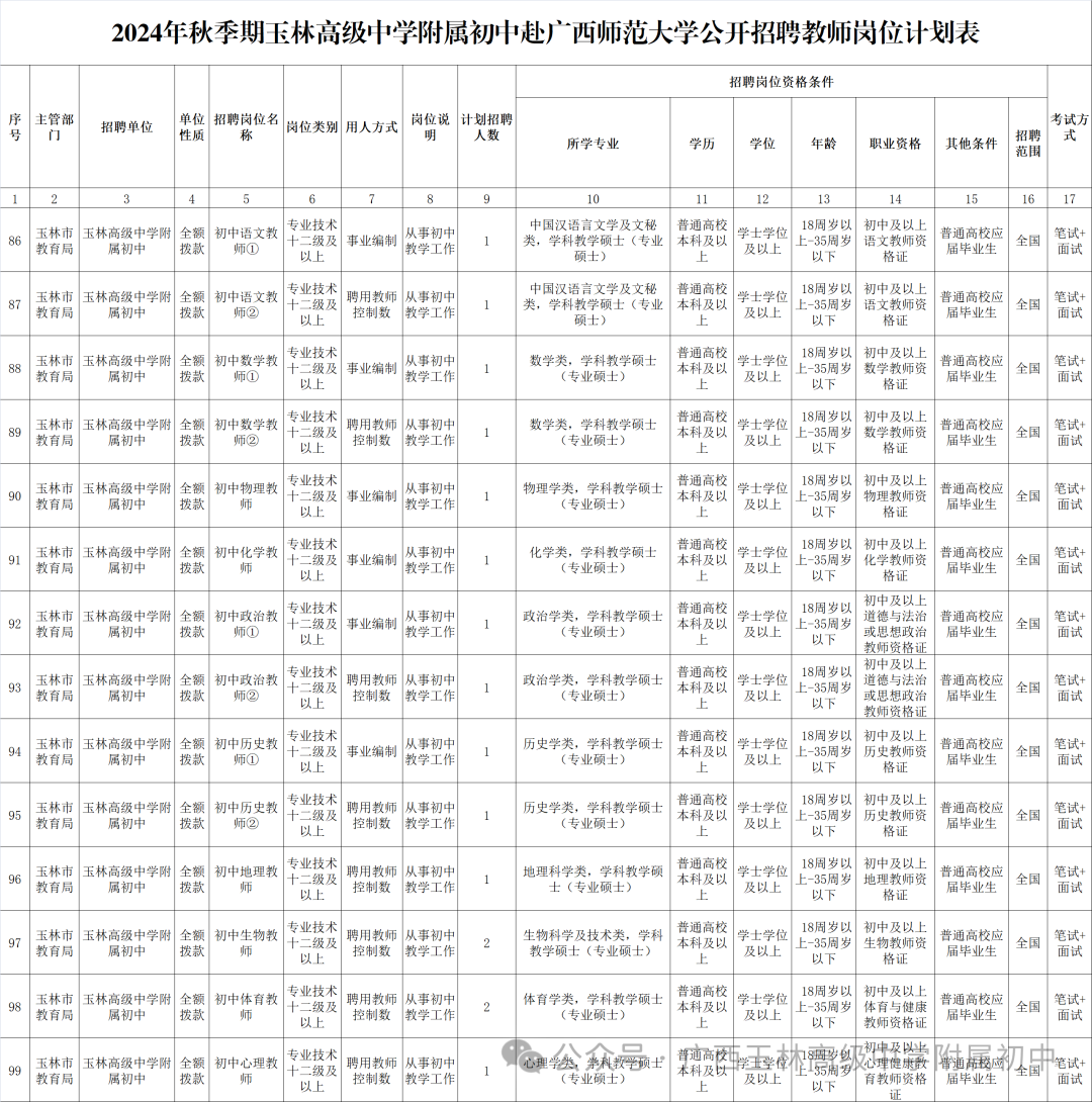 玉林高級中學附屬初中2024年秋季期赴廣西師范大學招聘教師啟事