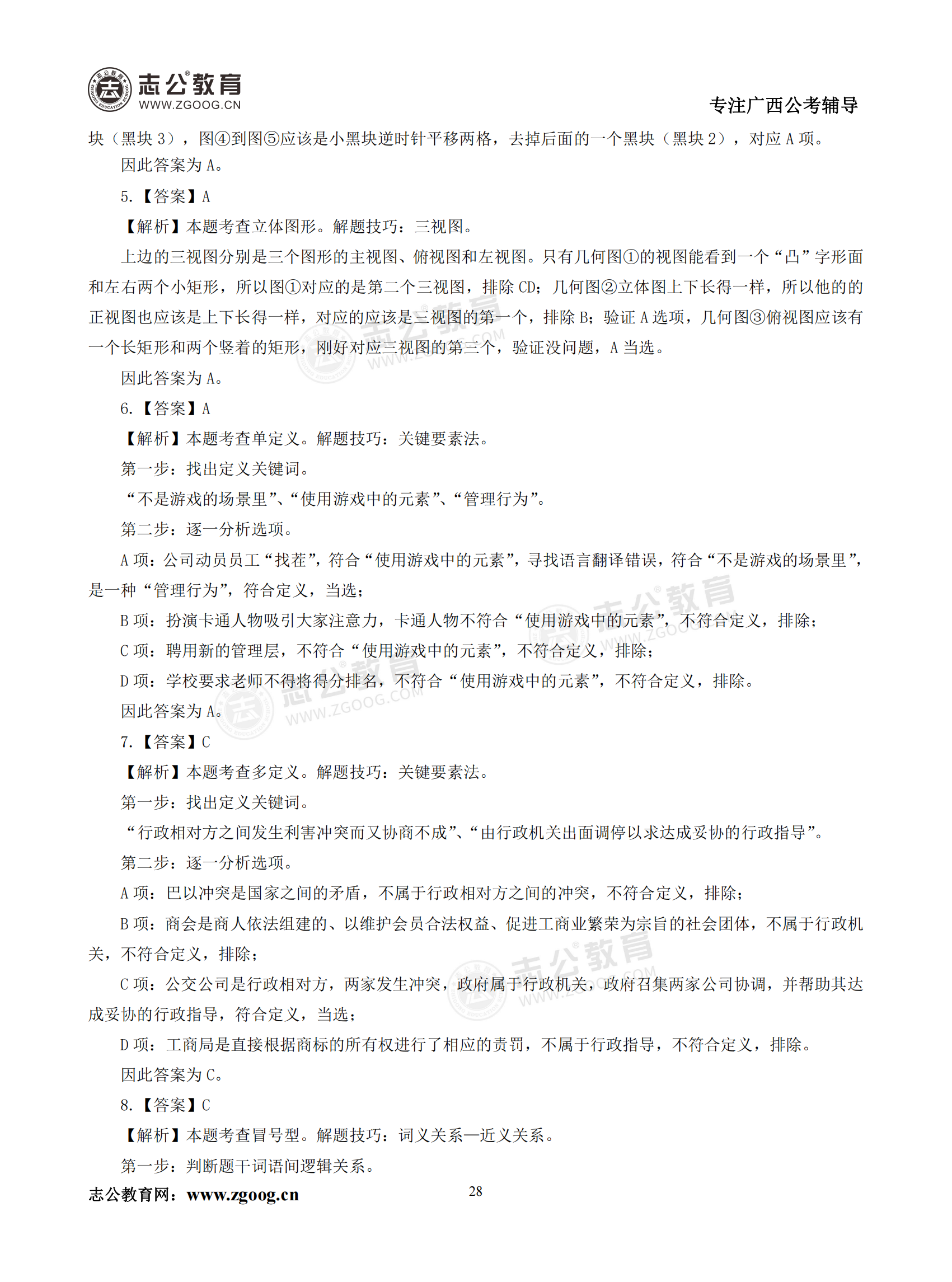 【公考模塊練習】判斷推理題一(答案)