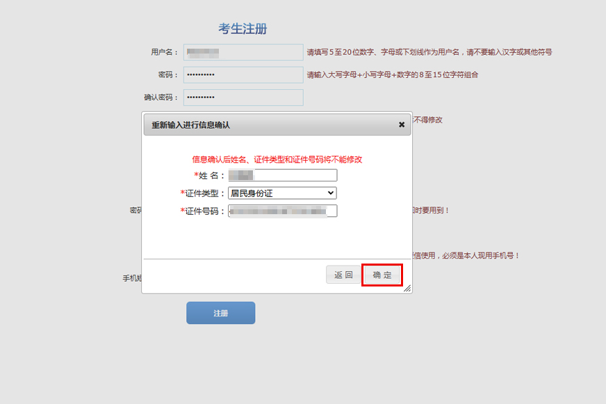 第三步:填寫完個(gè)人信息后,點(diǎn)擊注冊(cè)-確定,完成注冊(cè)