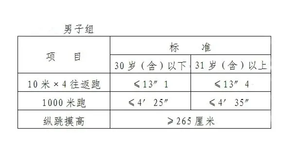(一)體能測試。資格審查合格即可參加體能測試。