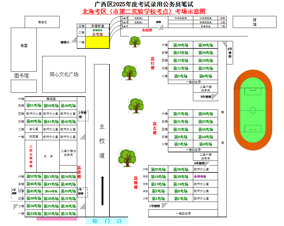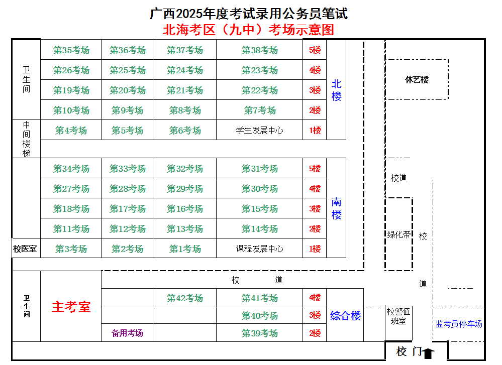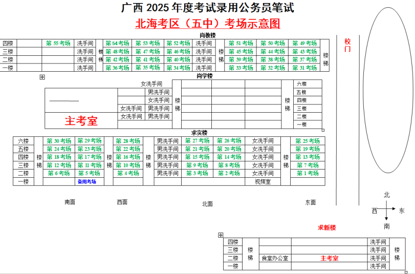 北??紖^(qū)共設(shè)置5個(gè)考點(diǎn),具體考點(diǎn)考場布置分別如下: