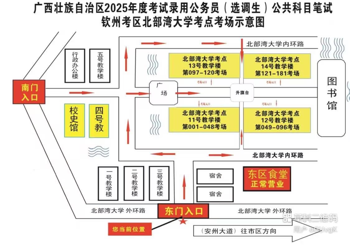 欽州考區(qū)共設(shè)兩個(gè)考點(diǎn),分別為北部灣大學(xué)考點(diǎn)、北部灣職業(yè)技術(shù)學(xué)??键c(diǎn)。(考點(diǎn)地址和具體考場(chǎng)安排請(qǐng)掃附后的二維碼查看)
