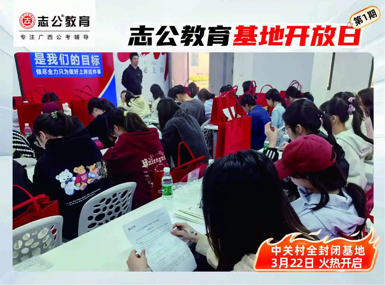 志公教育(中關(guān)村)全封閉基地于2024年12月16日正式開業(yè),總面積達(dá)十萬平方空間,是廣西ZUI大的全封閉公考學(xué)習(xí)基地。這里擁有全新升級的場地,空間布局合理,教學(xué)設(shè)施完備。寬敞明亮的教室,為學(xué)員提供舒適的學(xué)習(xí)環(huán)境;功能齊全的自習(xí)室,滿足學(xué)員隨時沉浸學(xué)習(xí)的需求。