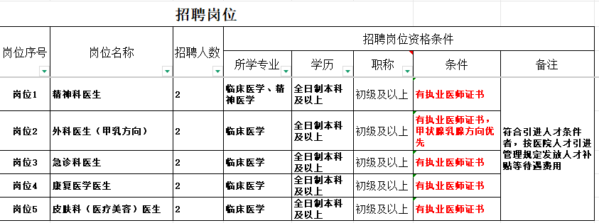 根據(jù)醫(yī)院業(yè)務(wù)發(fā)展需求,現(xiàn)向社會公開招聘以下崗位人員,具體招聘事宜如下: