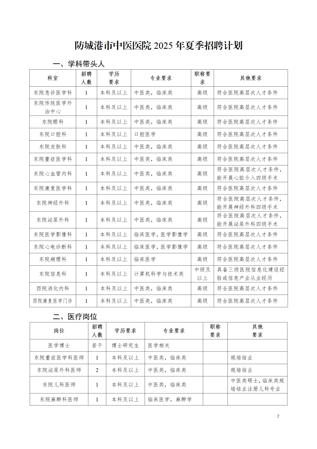 2025年防城港市中醫(yī)醫(yī)院夏季人才招聘簡(jiǎn)章