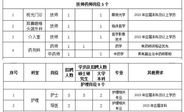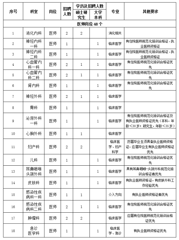 1.思想政治素質(zhì)好,擁護黨的路線、方針、政策。2.遵紀守法,醫(yī)德品行良好,有較強的事業(yè)心、責任心和進取心。3.身體健康,能滿足應聘崗位需要。4.具備相應的學歷和學位,有履行應聘崗位職責的專業(yè)能力、技能條件。5.具有團隊精神,有良好的溝通能力。6.具備應聘崗位所需要的其他條件。7.服從單位安排。