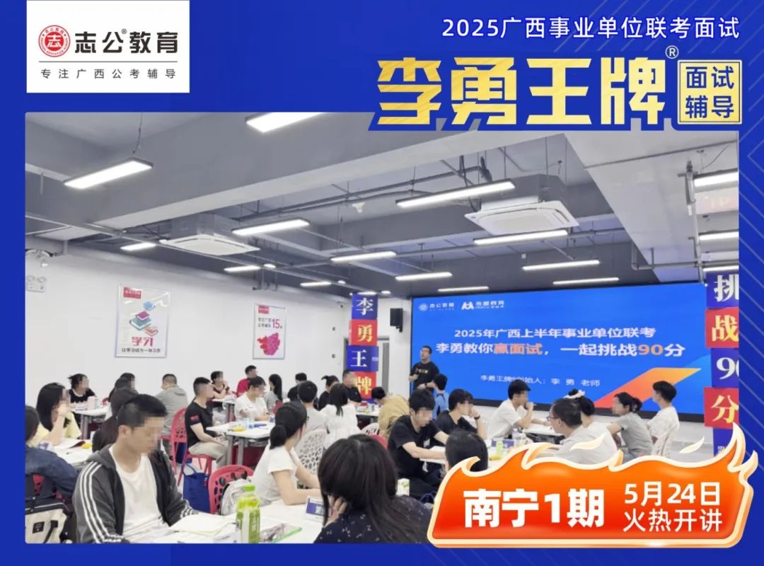 繼志公教育&李勇王牌®班教研室5月17日發(fā)布修改招生規(guī)則的通知后,各位未來“橘”長們,翹首以盼的時刻終于來啦!5月24日,志公教育李勇王牌®班——改革后的首個開班,在南寧火熱啟幕!現(xiàn)場學(xué)習(xí)氣氛爆棚,李勇老師與學(xué)員高頻互動,學(xué)員們直呼 “學(xué)到停不下來”!這不僅是一場面試特訓(xùn),更是一次思維與能力的雙重蛻變!