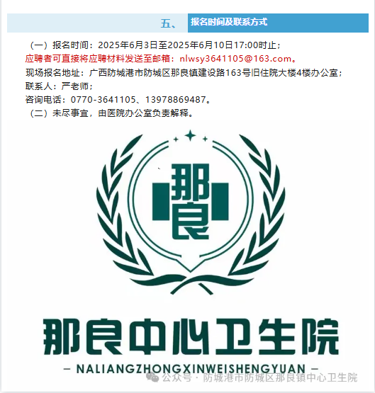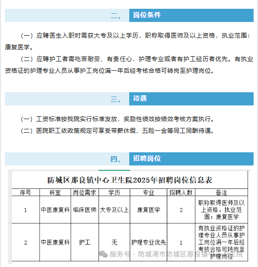 原文標(biāo)題:招醫(yī)生、護工啦!防城區(qū)那良鎮(zhèn)中心衛(wèi)生院“職”等你來