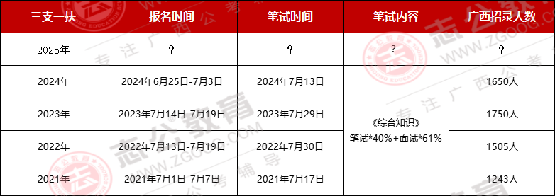 廣西什么時(shí)候出?正值畢業(yè)季,想必很多人想知道,根據(jù)下方圖片,廣西歷年三支一扶考試節(jié)點(diǎn)可知,三支一扶在六月底發(fā)公告,發(fā)布公告第二天開始報(bào)名,2024年招錄1650人,2023年招錄1750人,小志猜測(cè),今年也就是2025年預(yù)計(jì)1700人。