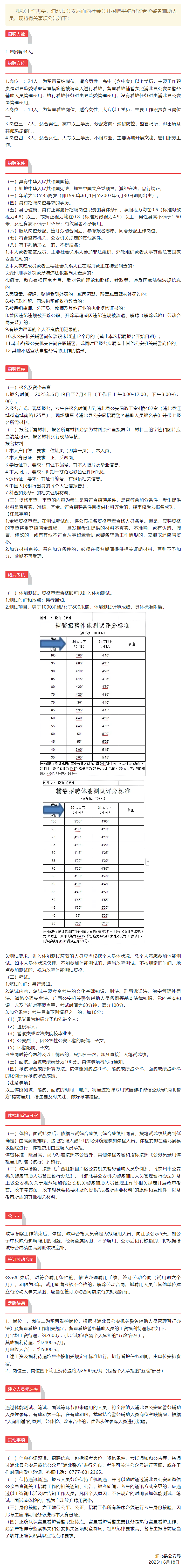 2025年浦北縣公安局招聘警務(wù)輔助人員44人