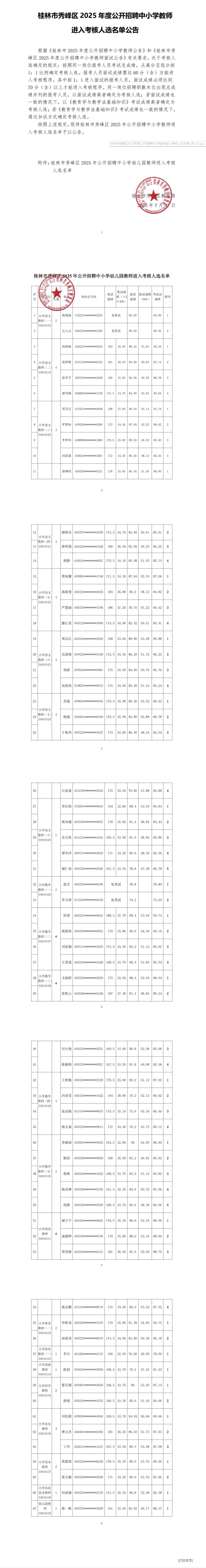 桂林市秀峰區(qū)2025年度公開招聘中小學教師進入考核人選名單公告