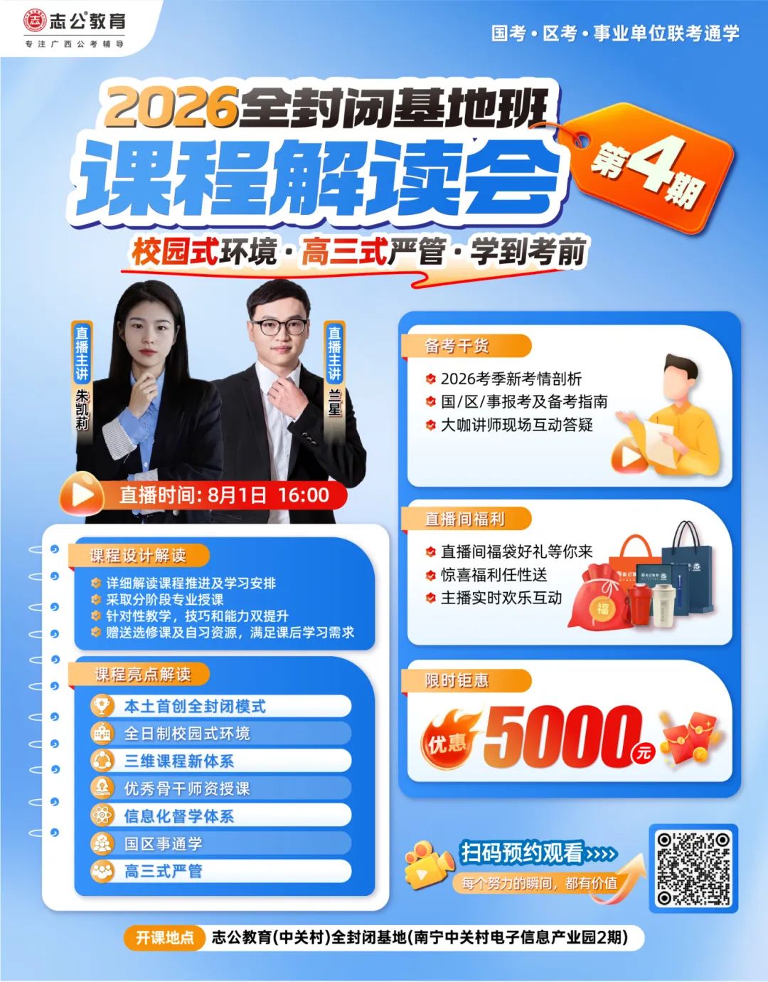 本次解讀會(huì)邀請(qǐng)到了朱凱莉、蘭星等資深講師。他們長(zhǎng)期深耕公考領(lǐng)域,對(duì)廣西的公考形勢(shì)了如指掌。在解讀會(huì)上,講師們將為大家深度剖析2026考季的新考情、分享報(bào)考及備考指南,與同學(xué)們進(jìn)行現(xiàn)場(chǎng)互動(dòng),更重要的是進(jìn)行2026年全封閉基地班第4期課程設(shè)計(jì)解讀!讓你在備考之初就搶占先機(jī)。????