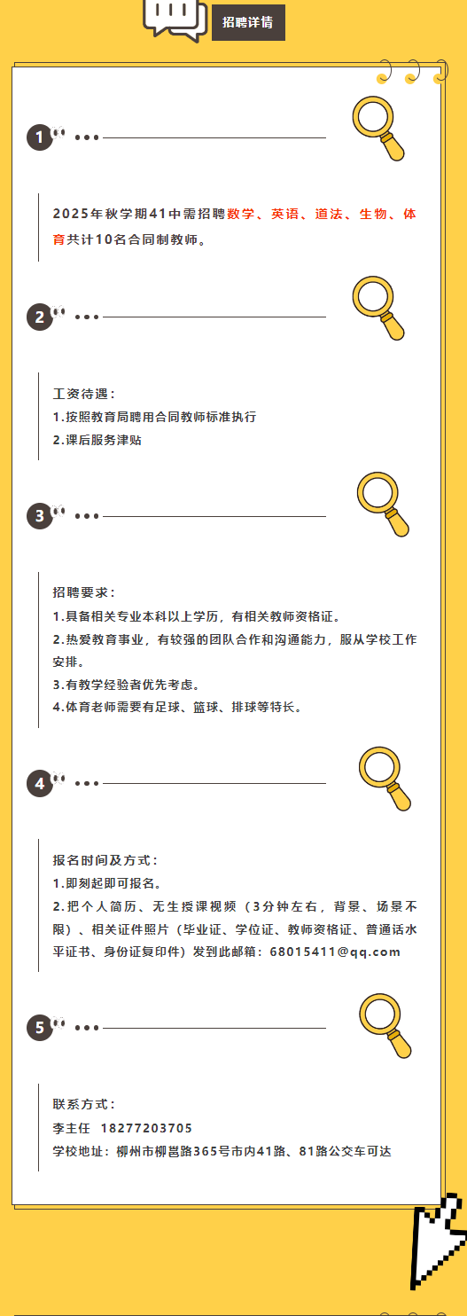 原文標題:柳州市第四十一中學 —— 招聘10名合同制教師