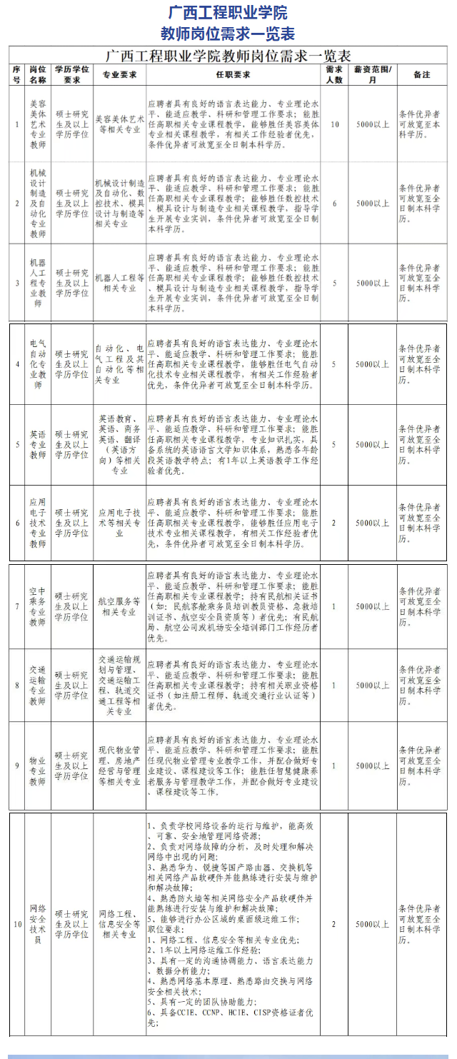 原文標(biāo)題:急聘!招賢納士 共筑未來(lái) | 廣西工程職業(yè)學(xué)院2025年人才招聘