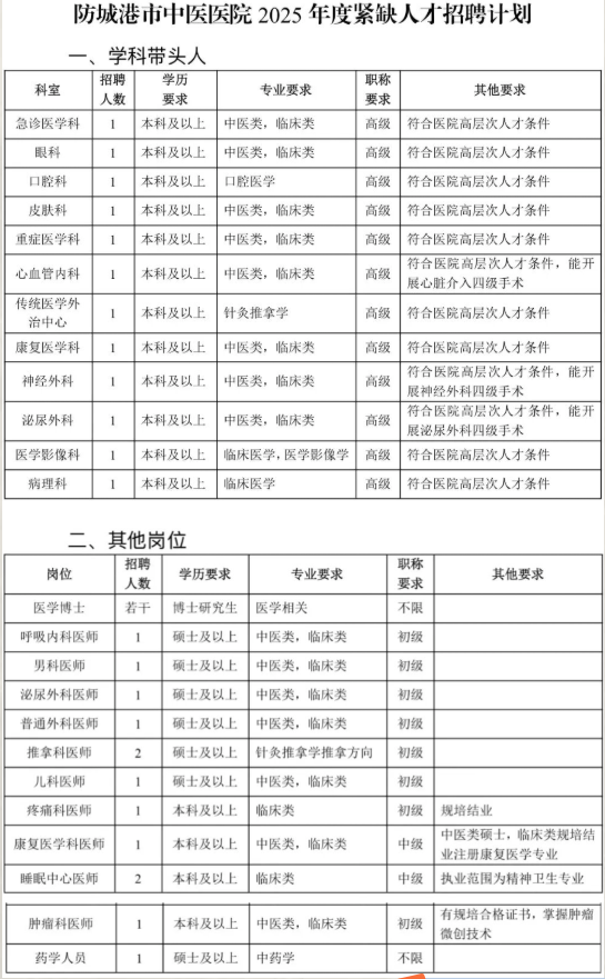 2025年度防城港市中醫(yī)醫(yī)院緊缺人才招聘簡章