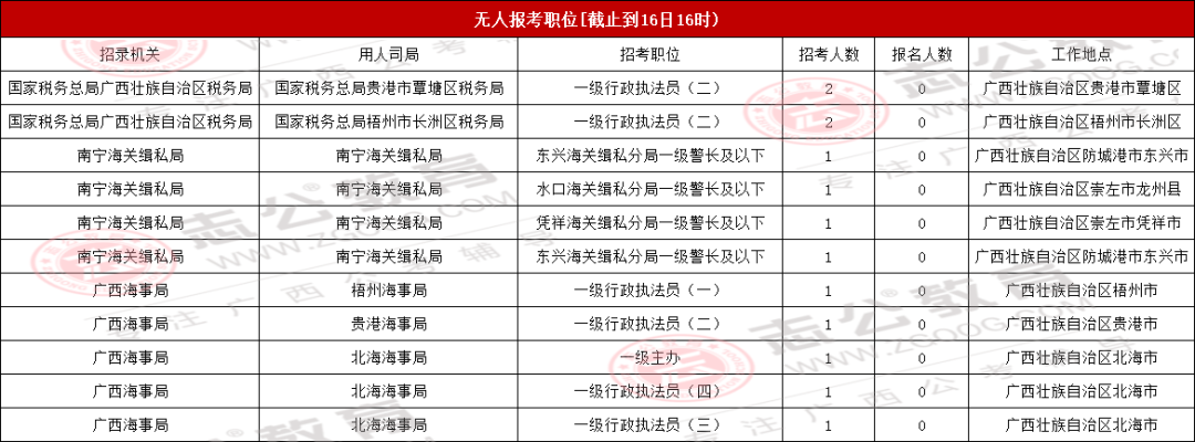 考生們注意!截至10月16日16時,2026國考(廣西)地區(qū)還有71個無人報考,占全部748個職位的9.49%。想避開激烈競爭的話,不妨結(jié)合自己的條件,多看看這些冷門崗位~