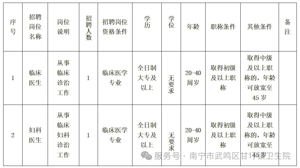 2025年南寧市武鳴區(qū)甘圩鎮(zhèn)衛(wèi)生院公開招聘編外工作人員2人
