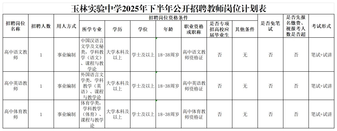 2025年玉林實(shí)驗(yàn)中學(xué)下半年招聘教師3人
