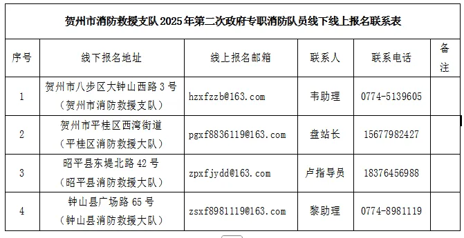 2025年賀州市消防救援支隊(duì)公開招錄政府專職消防隊(duì)員的公告