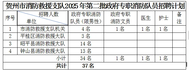 根據(jù)工作需要,賀州市消防救援支隊(duì)面向社會(huì)公開招錄政府專職消防隊(duì)員,現(xiàn)將有關(guān)事項(xiàng)公告如下。