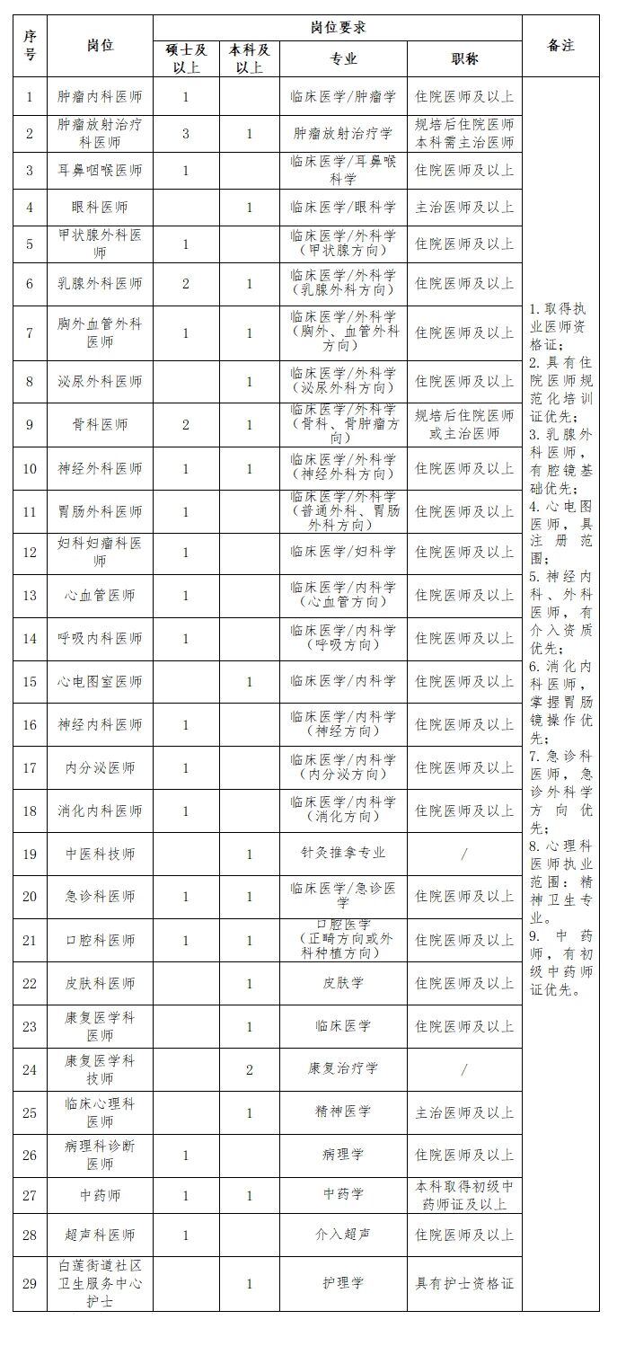 1.依據(jù)國家和學校相關(guān)規(guī)定享受相應的待遇和工作條件,符合醫(yī)院人才引進政策的享受相應等次(博士、學科帶頭人、業(yè)務骨干、碩士研究生、急需崗位本科畢業(yè)生)的待遇,含安家費、科研啟動費、租房補貼等,具體情況以人事科解釋為準。