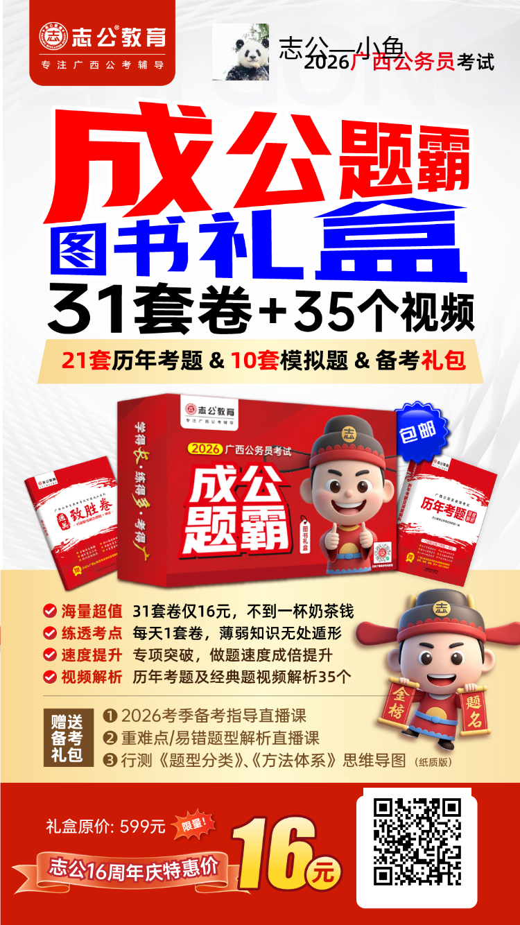 總成績 = 筆試總成績 ×50%+ 面試成績。同分排序規(guī)則:先比面試成績,面試成績也相同則比行測成績,以此確定入關(guān)于2026廣西區(qū)考備考資料
