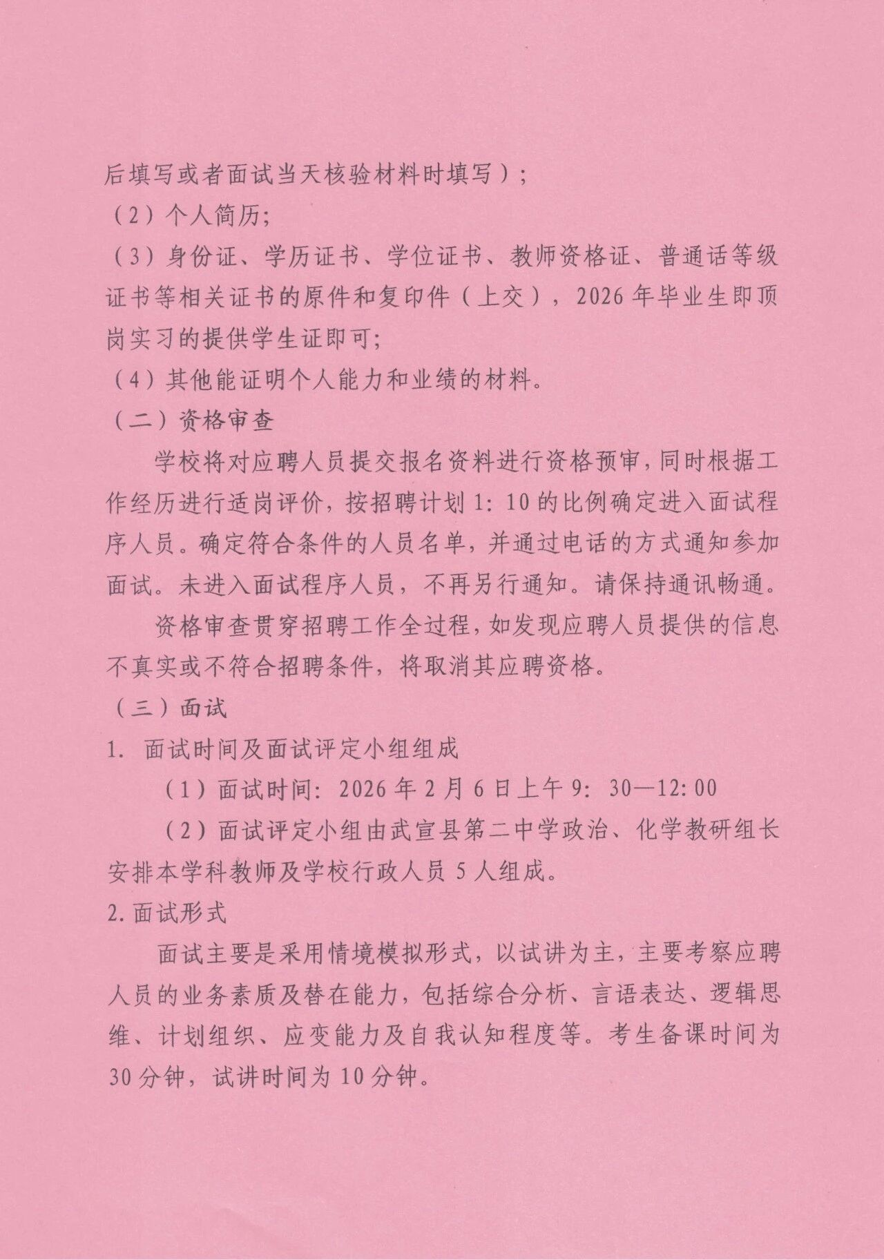 2026年來賓武宣縣第二中學編外(頂崗)教師招聘3人