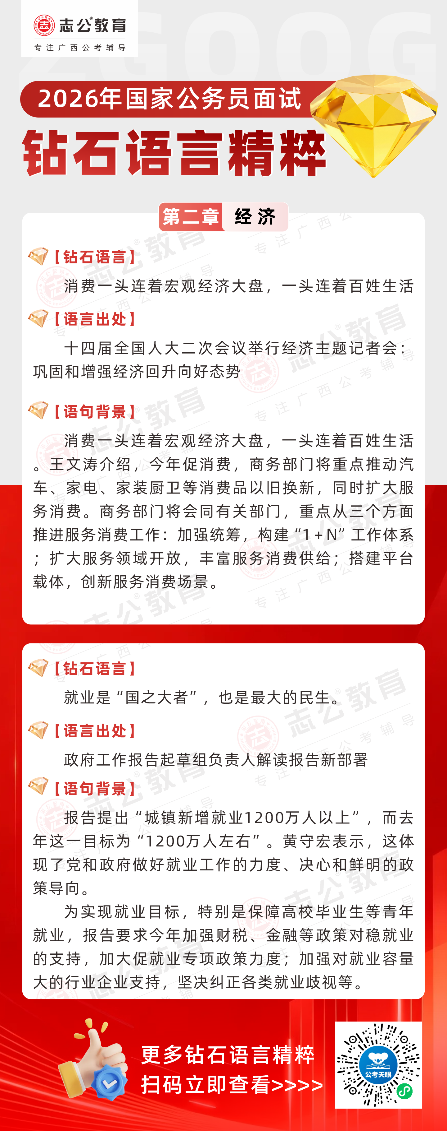 志公教育推出《2026國(guó)家公務(wù)員面試·鉆石語(yǔ)言精粹》經(jīng)濟(jì)篇!幫助考生把握經(jīng)濟(jì)類題目應(yīng)答邏輯,提升語(yǔ)言表達(dá)層次,助你在面試中脫穎而出。備考2026國(guó)考面試,從掌握“鉆石語(yǔ)言”開始!